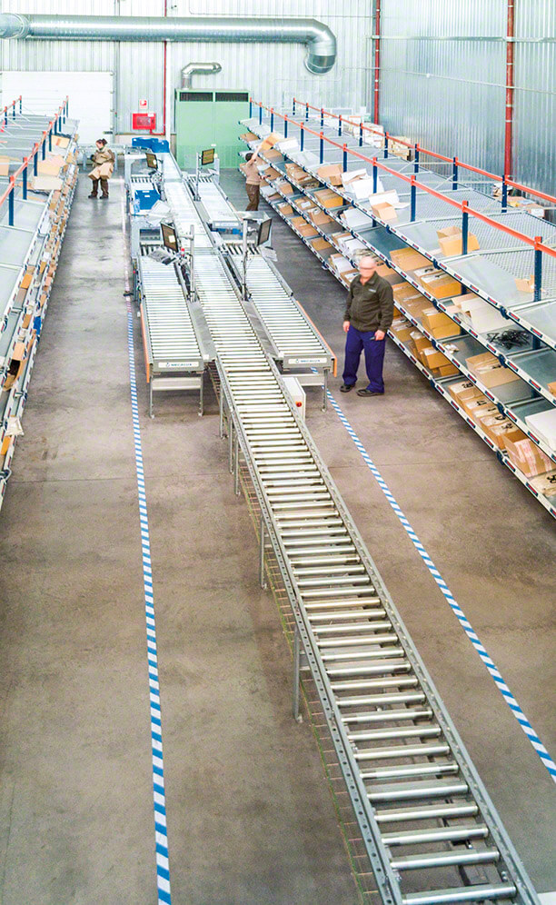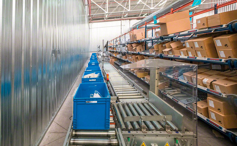 - Accelerated picking system: the automatic conveyor circuit streamlines the movements of operators during order picking.
