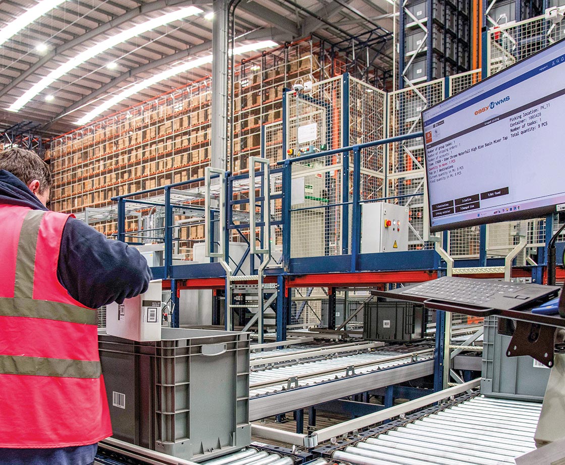 Smaller items, including taps and bathroom accessories, are housed in a 12-metre-high miniload AS/RS for 7,900 totes. “We’ve seen a significant improvement compared to our previous manual operations. The system’s ability to swiftly and reliably supply the picking area has increased accuracy and reduced errors,” says Bacon. To further enhance fulfilment performance, a put-to-light system was installed on shelves located just behind the two pick stations.