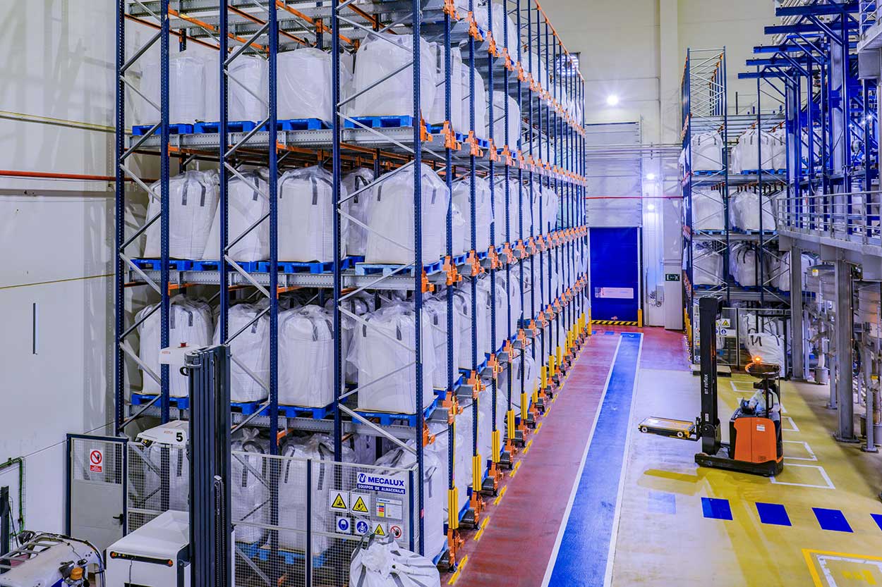 Herba Ricemills’ facility also incorporates racking equipped with the semi-automated Pallet Shuttle, well-suited for working with very high volumes of same-SKU pallets.
