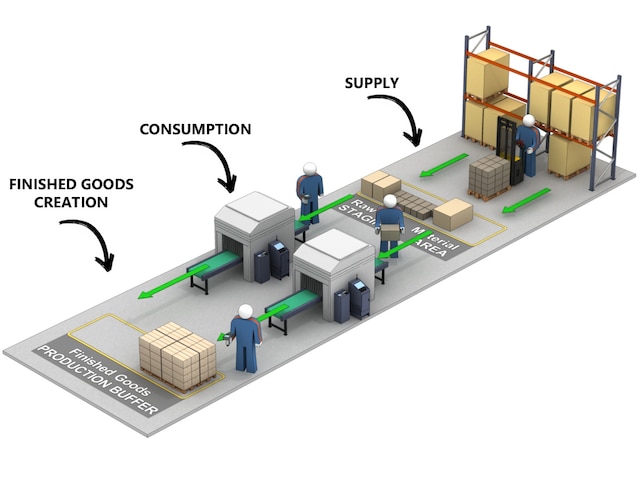 - Fully controlled by the MES: The WMS for Manufacturing module oversees line supply, while the MES takes care of the rest of the process.