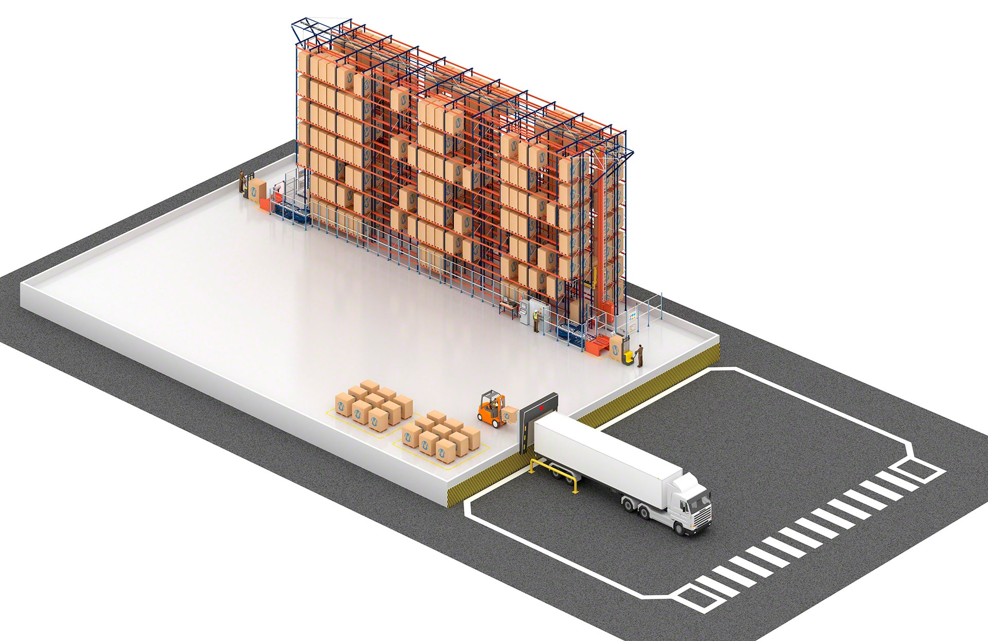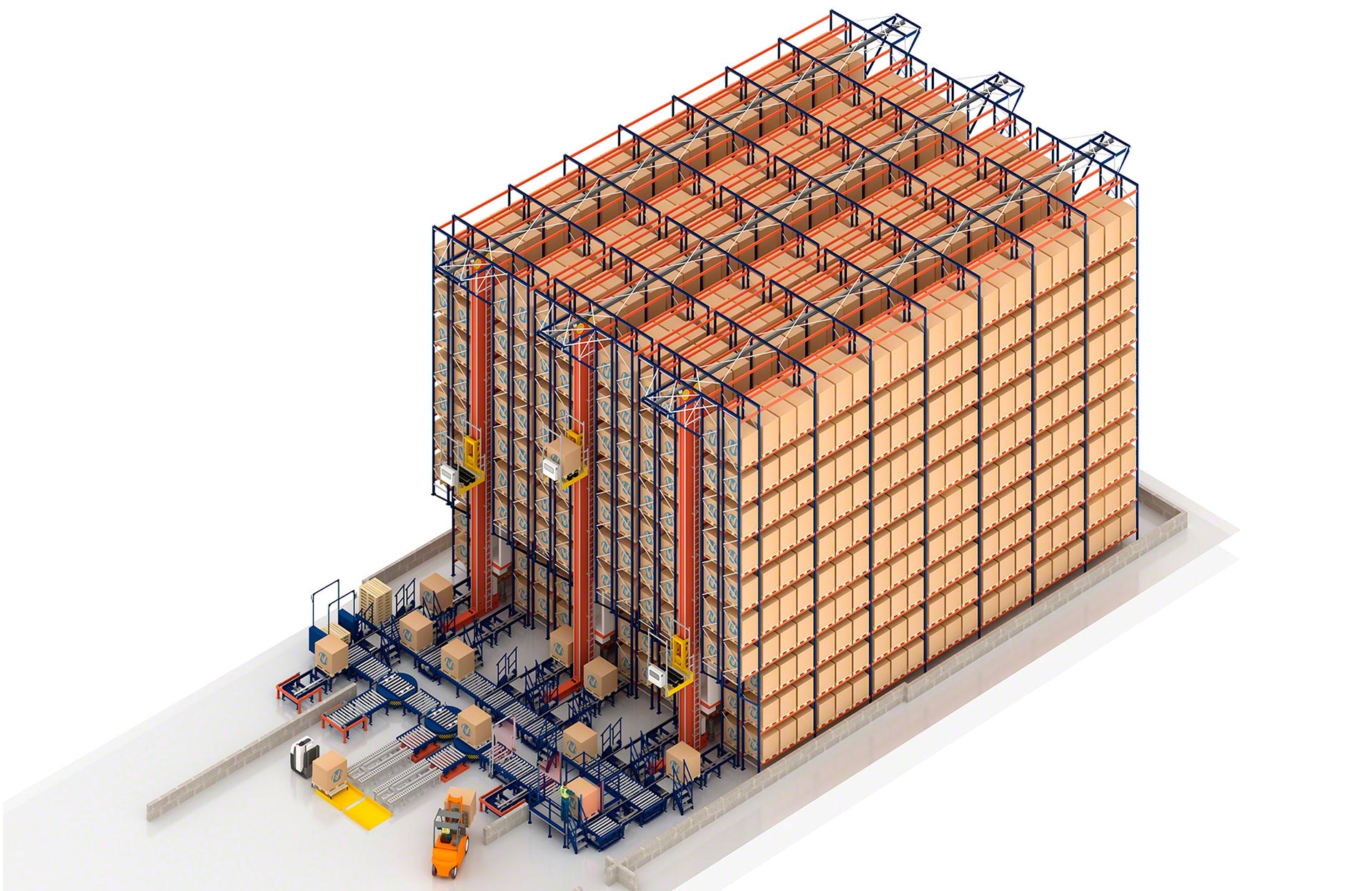 Automated storage and retrieval system (AS/RS) for pallets designed to boost productivity and increase warehouse capacity.