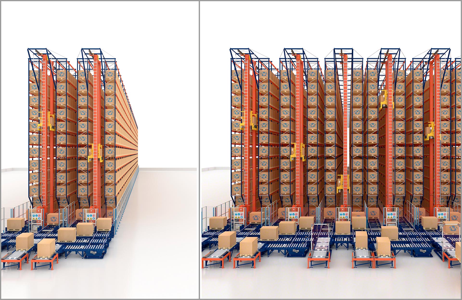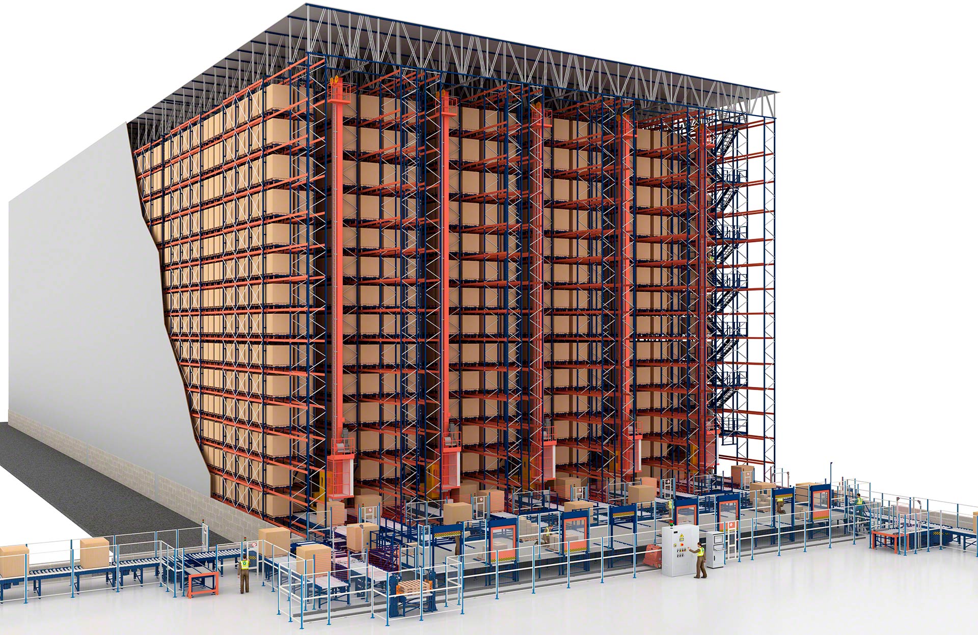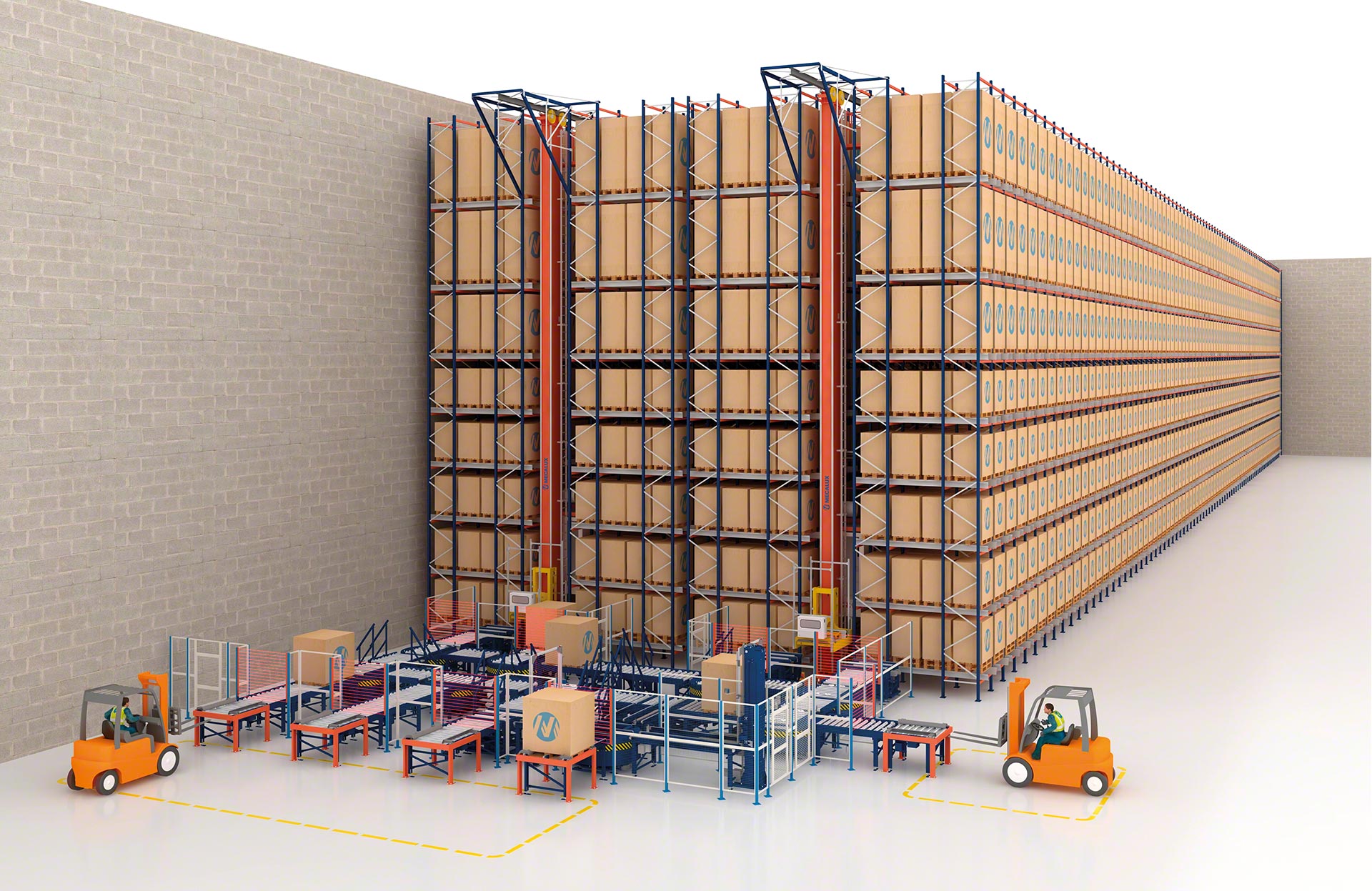 - Comprehensive solution: Mecalux designs, manufactures, installs and commissions all AS/RS components. These include the racking, stacker cranes, conveyors, and warehouse control and management systems (WCS and WMS).