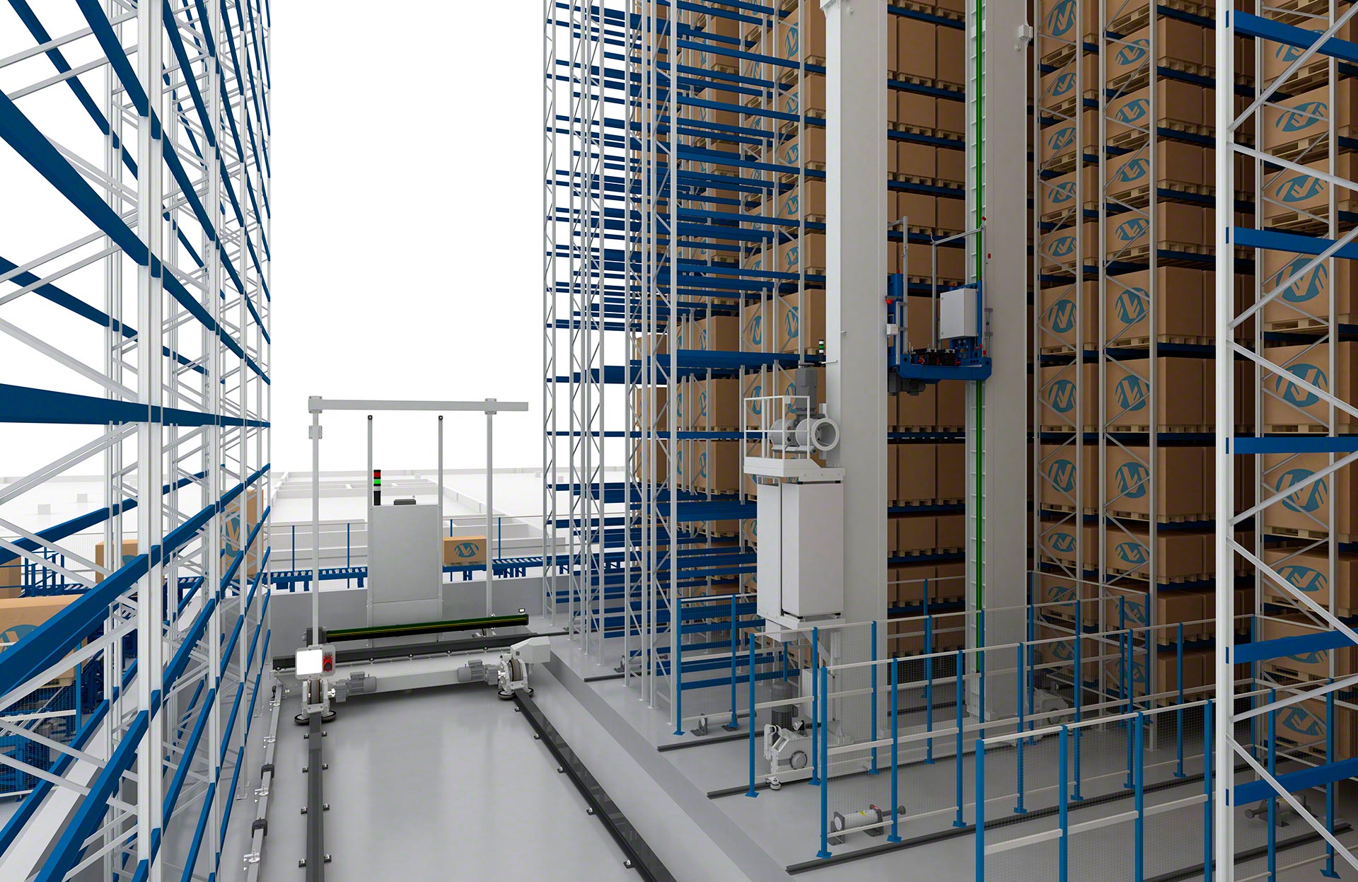 This is not essential in all scenarios. For companies requiring a relatively low turnover of goods but a high storage capacity, one stacker crane could be shared by several aisles. In such cases, aisle-changing solutions (e.g., a curved-track system or a transfer bridge) can be installed to enable the stacker crane to operate in different aisles. Nevertheless, to maximise efficiency in an AS/RS, it’s ideal to use one stacker crane per aisle.