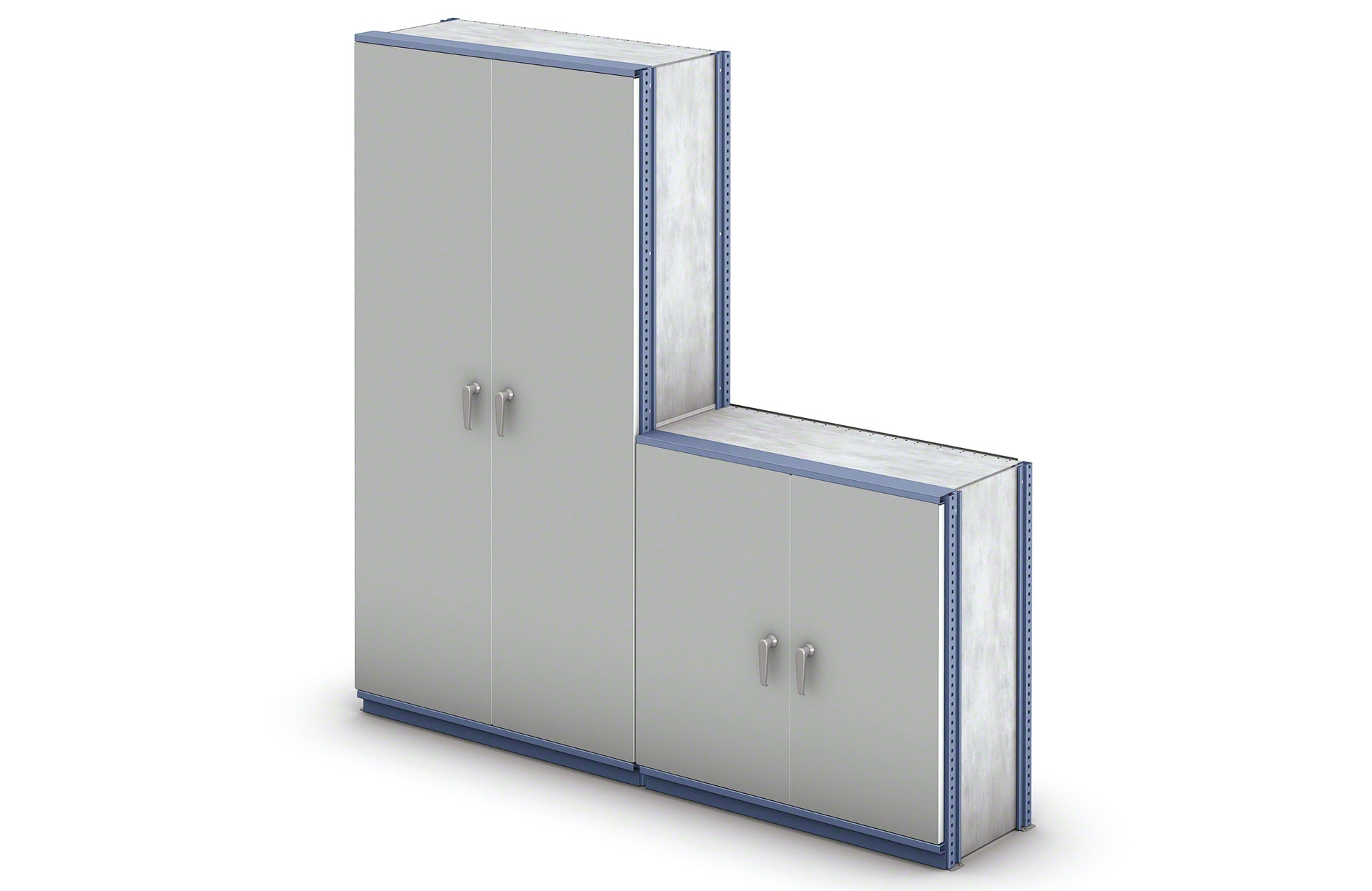 - Configurable and scalable: the height of the shelves can be changed by moving the panels in increments of 25 mm. Moreover, the storage system is easily expandable by adding bays and height levels.