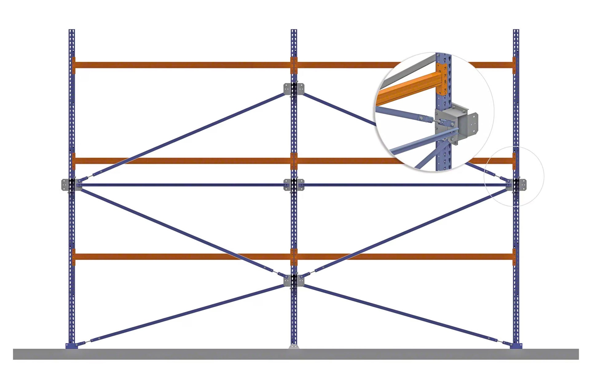 The basic structure of conventional pallet racking — whether single- or double-deep — comprises a set of vertical and horizontal metal parts. Their adjustable connections allow for easy, fast assembly.