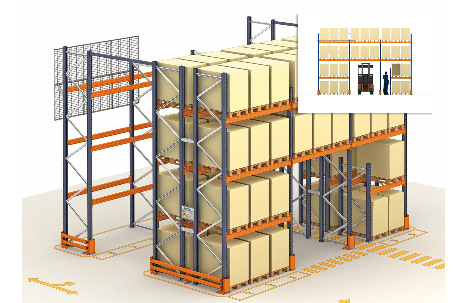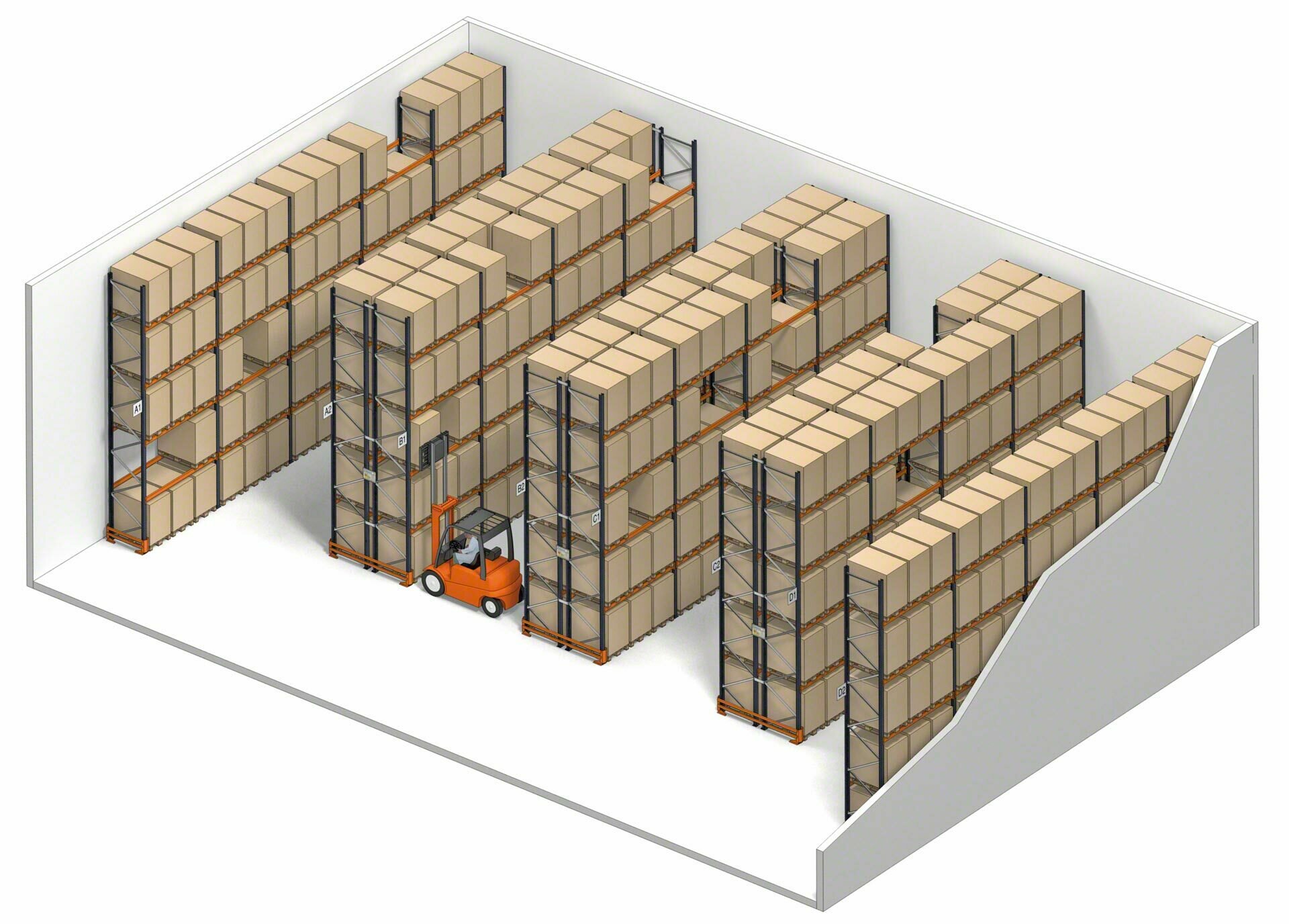 - Suitable for picking: operators can perform picking tasks at floor level (or on the lowest parts of the racking). They can also pick items from higher locations using order pickers.