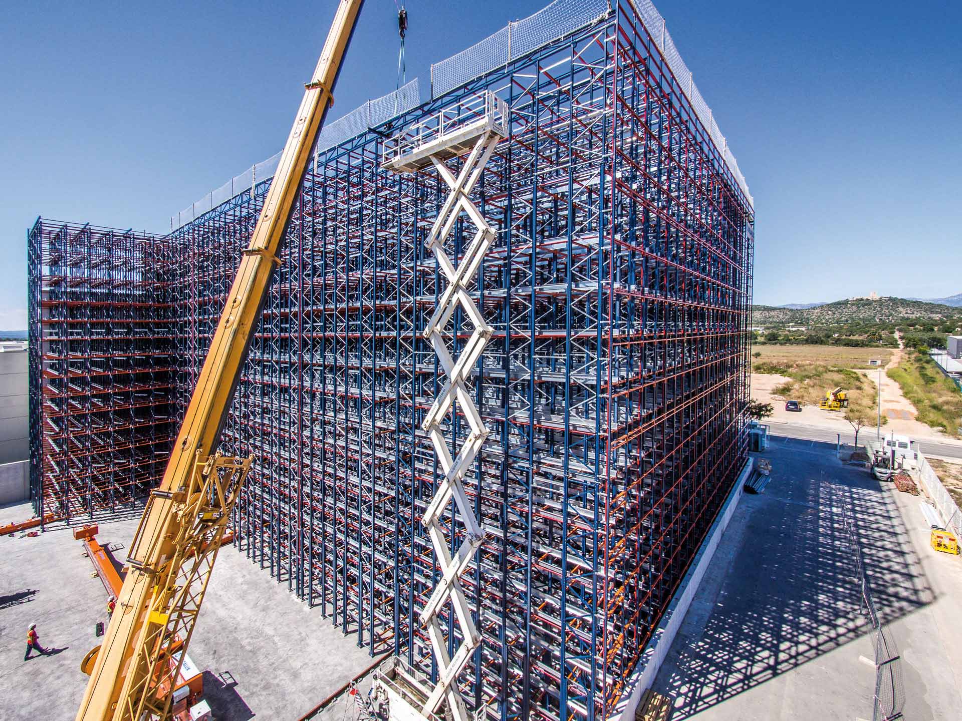The height of a rack supported building is only conditioned by the regulations in force and the reach of the handling equipment employed. In an automated clad rack warehouse, for instance, it is possible to install racking measuring up to 45 m high.